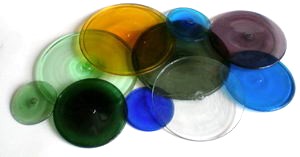 Die farbigen Glasbutzen können verschieden Durchmesser haben. Meist liegen die Durchmesser zwischen 3 und 10cm mit dem Schwerpunkt zwischen 6 und 8cm.