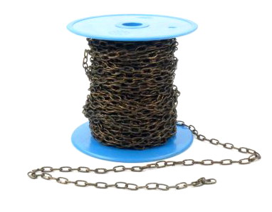 Diese brüniertee Bilderkette dient zum z.B. zum Aufhängen kleinerer Bleiverglasungen (Kabinettscheiben) oder Tiffany-Fensterbilder. Auch zum Stabilisieren von Hängelampen, die mit der Öffnung nach oben aufgehängt werden, haben wir dieses Kettchen verwendet.