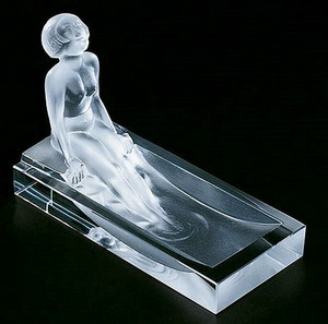 Dekorationsobjekt des Art Deco aus fein mattiertem Bleikristallglas. Die geraden Flächen des Bades sind schön geschliffen und poliert.