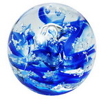 Glaskugel - Paperweight "BLUE WELLEN" nachleuchtend - klein - ca 6cm