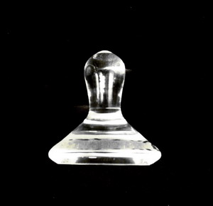 Kleiner Glasläufer in flacher Form, mit einer planen, angerauhten Fläche von ca. 5 cm Durchmesser.