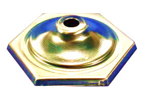 6-eck-Kappe aus Messing ca 4,2cm Kantenlänge. Eventuell vor der Verwendung der Endkappe in einer Tiffanylampe, diese komplett verzinnen - dann kann der Messingdeckel später leichter in der Farbe der Lötnähte patiniert werden.