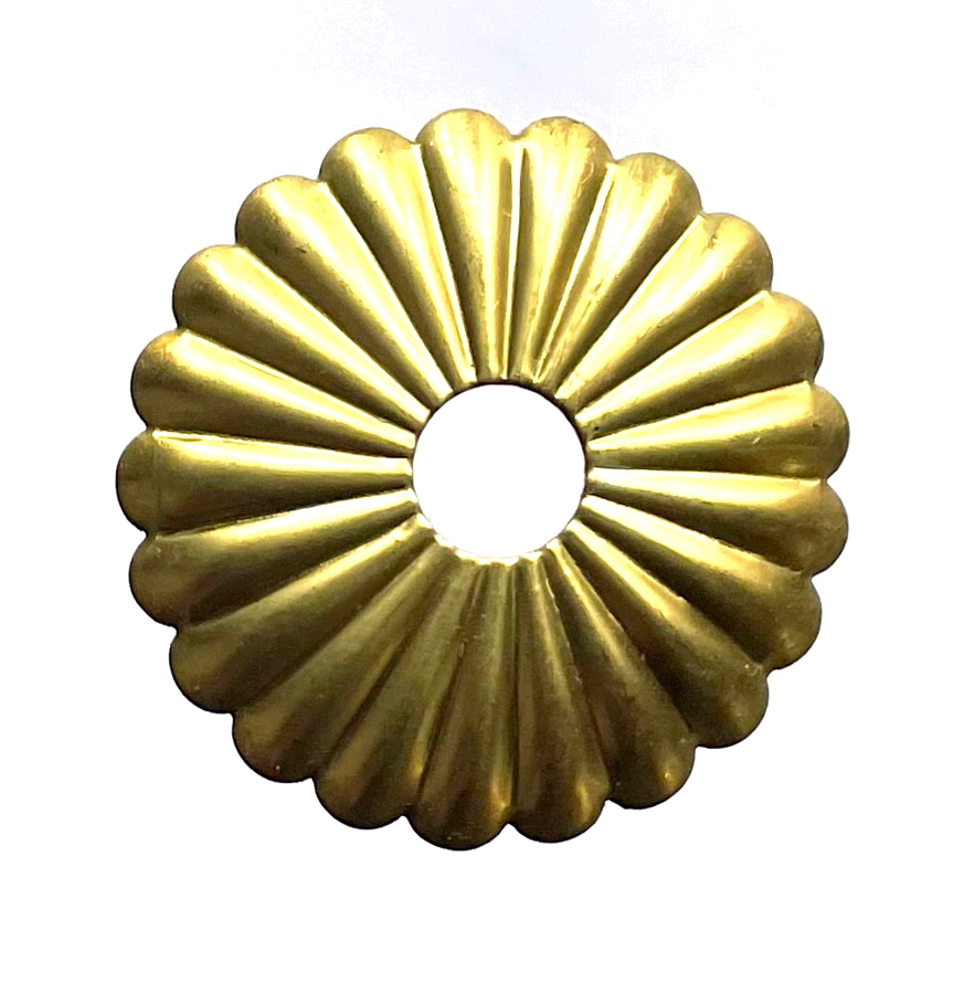 sehr schöner Lampendeckel aus Messing getrieben - gut lötbar. Durchmesser ca. 45 mm über die Spitzen, ca. 42mm am den EInbuchtungen.
