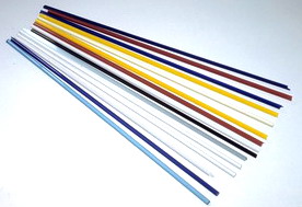 Diese Perlenglasstäbe sind das Standardmaterial der Perlendreher. Es ist preiswert, hat einen hohen AK und ist ein "langes" Glas, wie der Glasverarbeiter sagt. "Lang" bedeuted hier nicht die Länge der Glassstäbe sondern dass die Zeitspanne, in der das Glas abkühlt und gleichzeitig verarbeitbar bleibt, lang ist.