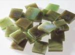 Glasmosaik-Steinchen aus moosgrünem Tiffanyglas. 200gr Packung mit ca 300 Steinchen.