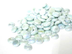 weiss-grünliche, perlmuttfarbige Glas-Nuggets. Leicht irisierend. ( 1 Kilogramm sind etwa 220 Stück)