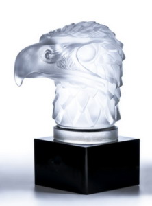 Adlerkopf im Art Deco Stil aus fein mattiertem Bleikristallglas auf schwarzem Sockel. Eignet sich auch gut als hochwertige Trophäe etc.