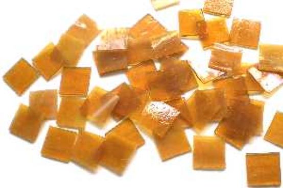 Tiffanyglas, von Hand in leicht unregelmäßige Quadrate geschnitten. Problemlos in kleinere Steinchen zu spalten. Schöner Bernsteinton, relativ transparent, zu einem sehr günstigen Preis.
