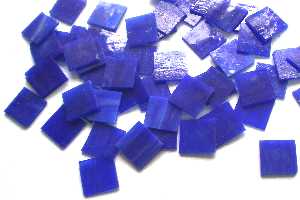 Tiffanyglas, von Hand in leicht unregelmäßige Quadrate geschnitten. Problemlos in kleinere Steinchen zu spalten. Schönes Dunkelblau zu einem sehr günstigen Preis.