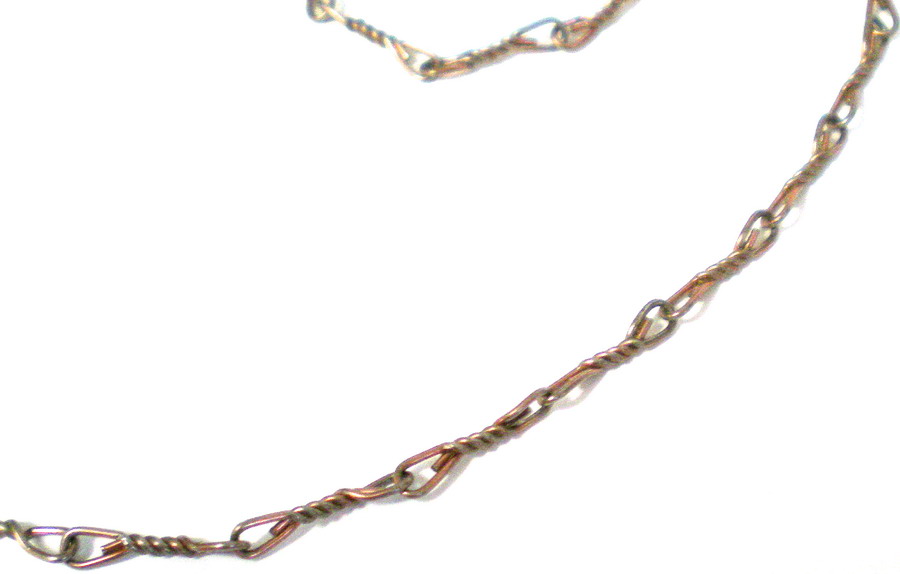 Gezwirbelte, feine Kette, die eine vergleichsweise hohe Tragkraft hat, da die Glieder sich nicht ohne weiteres öffnen können. Sieht sehr gut aus!
